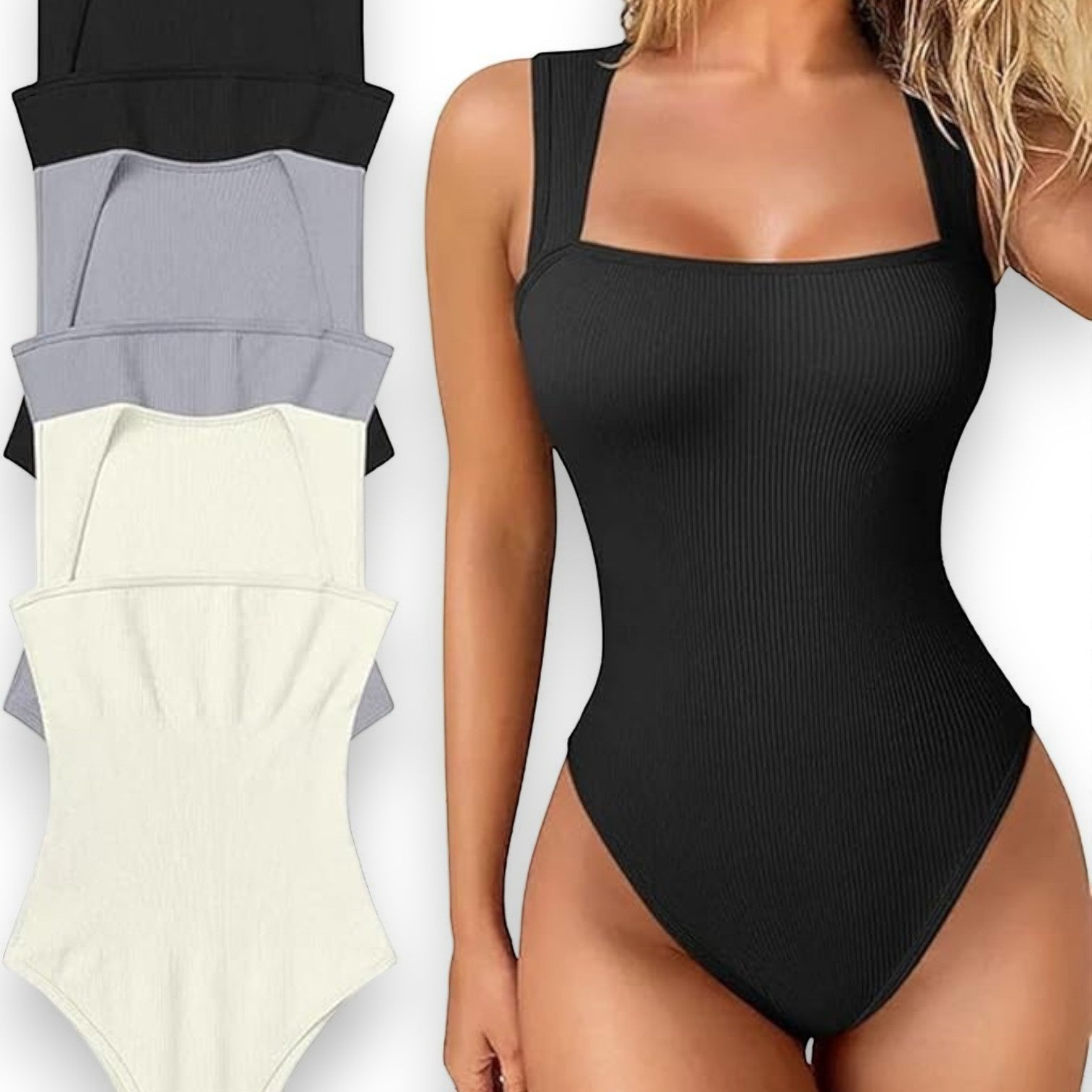 Body Mujer sin Manga con Escote Cuadrado Pague 1 y Reciba 2